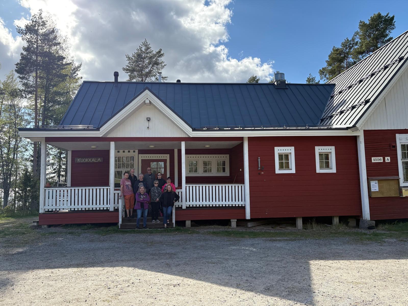 26.5.2025 Kuokkalan kehityshanke etenee, katon uusiminen ja ikkunapokien kunnostaminen on kovassa vauhdissa. Talkoolaisia on riittänyt, toki joukkoon mahtuu vielä innokkaita tekijöitä. Hanke jatkuu vielä ikkunapokien kunnostamisella sekä nyt kun maa on sulanut on aika siirtyä ulos hommiin mm. riukuaidan tekoon ja vieraslajien kitkemiseen. Kuvassa osa talkooporukasta.